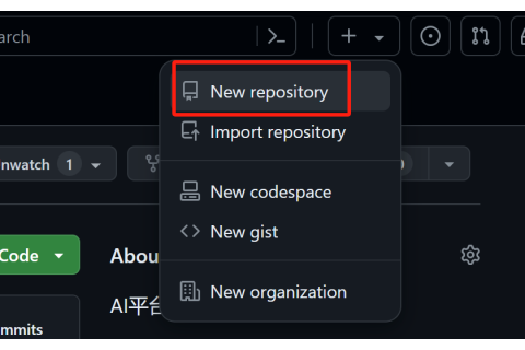 在右上角,点击 "+" 图标,然后选择 "New repository"。